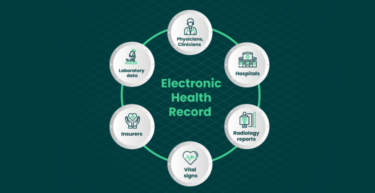 Electronic Health Records (EHR) are digital versions of patients’ medical histories stored in secure computer systems. They contain comprehensive patient information such as medical history, diagnoses, medications, laboratory results, imaging reports, and treatment plans. EHR systems allow healthcare providers to access and share patient data quickly across hospitals and clinics.