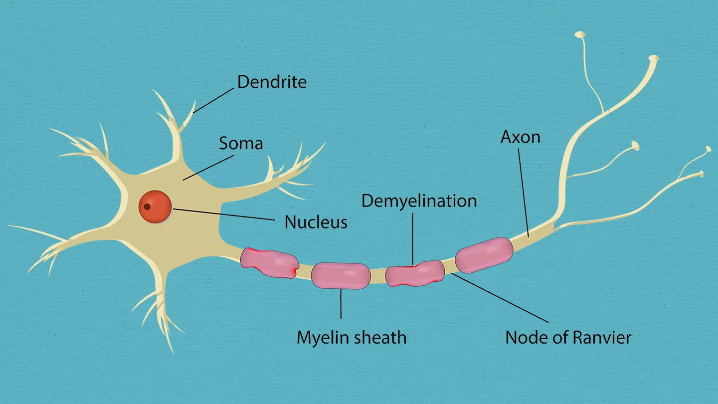 - The immune system damages the myelin sheath (protective covering of nerves).